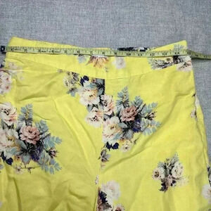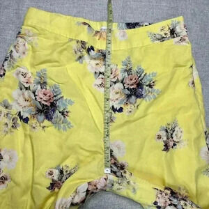 Anthropologie Feather and Bone Flare Pants Sz 6 Yellow Floral Cropped Wide Leg