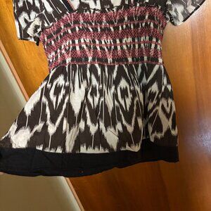 Anthropologie Fei Batik Short Sleeve Blouse Size 12 RARE