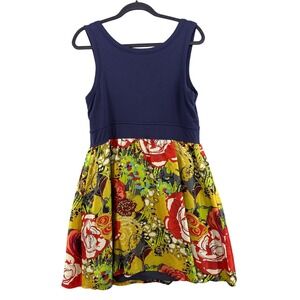 Keywords: floral dress, sleeveless dress, summer dress, casual dress, floral print, navy blue dress, colorful dress, women's dress, dress, sun dress, garden party dress, 100% silk bottom, FEI, Anthropology