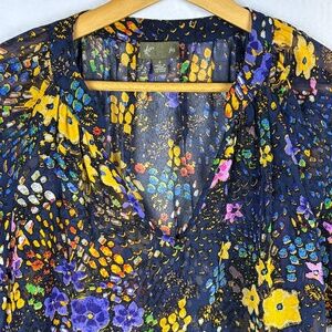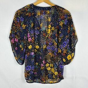 Anthropologie Fei Women Short Sleeve Sheer Silk Blouse Sz 4 Boho Floral Flutter