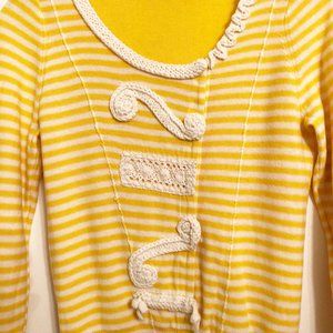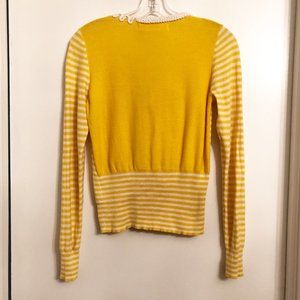 Anthropologie Sparrow cardigan. Incredibly cute! Lightweight and perfect for spring. Striped with appliquéd knit details. Snap front closure. Long sleeves. Round neck. Yellow, white.