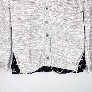 Anthropologie Field Flower Cardigan Sweater Size Large Button UP Double Hem Gray