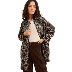 Anthropologie Field Flower Geo Wool Oversized Sweater Coat Brown Multi Medium