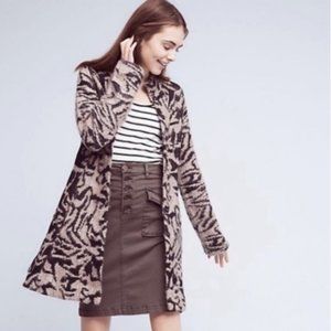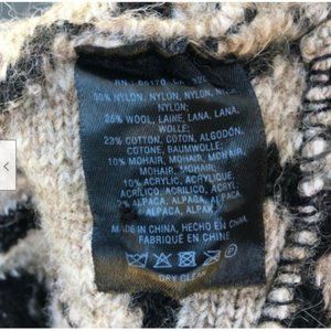 Measures 35" around the bust, 35" around the waist, and 30" in total length. Material is 30% Nylon, 25% Wool, 23% Cotton, 10% Mohair, 10% Acrylic, and 2% Alpaca. There are some lightly pulled threads but no major flaws (holes or stains).