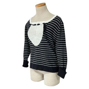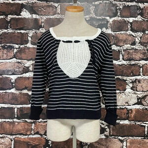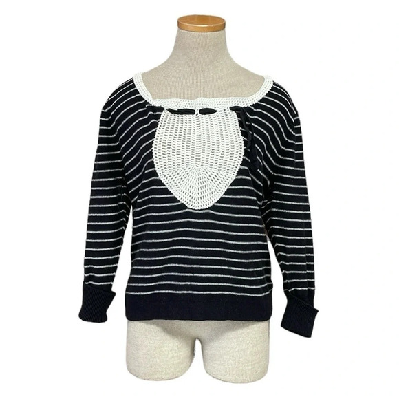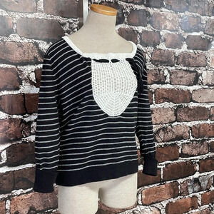 Anthropologie Field Flower Sweater Women's XL X Large Black White Stripe Crochet