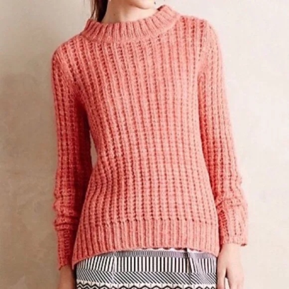 Anthropologie Field Flower Waffle Knit Wool-blend Sweater in Coral Size Medium
