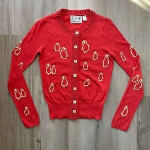 Anthropologie Field Flower Women’s Small Flocked Penguin Cashmere Wool Cardigan
