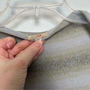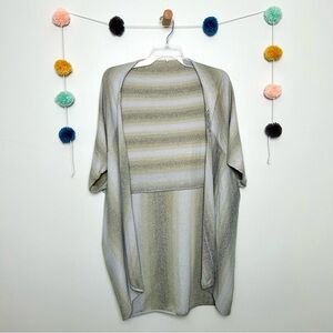 Short sleeve cocoon cardigan. Light blue with dark gray and green stripes for a faded look. Flowy and lightweight. Size M/L. Great condition!