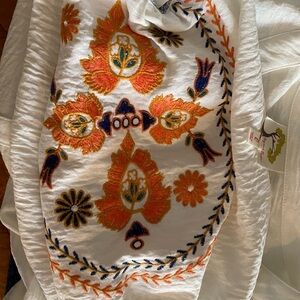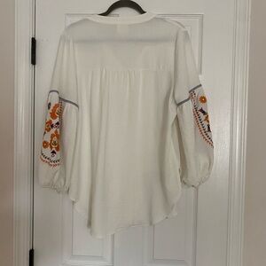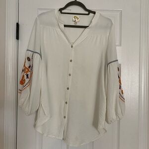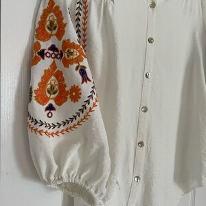 Anthropologie Fig & Flower Boho Button Down Off White With Embroidery Size Large
