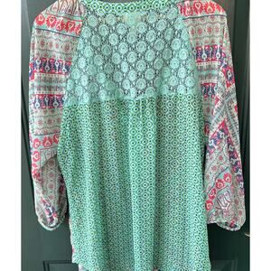 Anthropologie Fig & Flower Boho Tunic Top 3X Lace Back Global Print Beachy Artsy