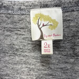 Anthropologie Fig & Flower Embroidered Tie‑Front Button Top 2X Gray Boho Sleeve