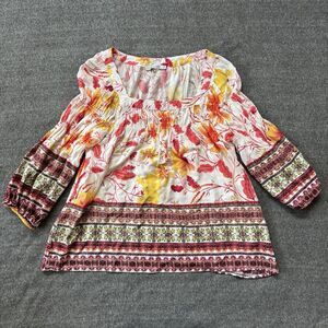 Anthropologie Fig & Flower Floral Top Medium Boho Artsy Red Colorful Peasant
