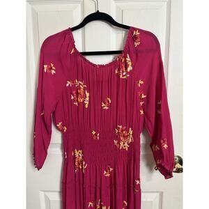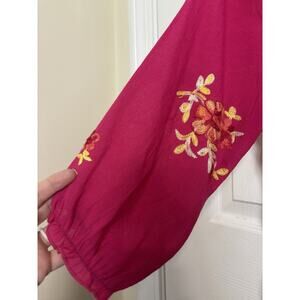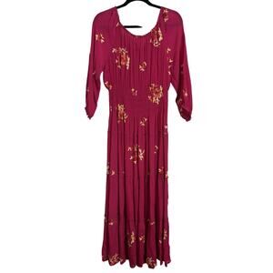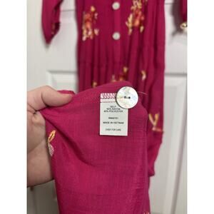 Anthropologie Fig & Flower Pink Floral Embroidered Tiered Maxi Dress Size Large