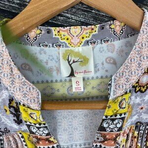 Anthropologie Fig & Flower Print Button 1/2 length Sleeve Blouse Top S Small