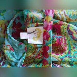 Anthropologie Fig & Flower Top Sheer Blouse Floral Button Accent Petite Sz S