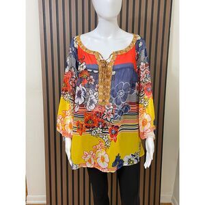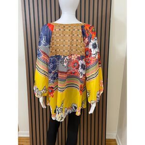 Anthropologie Fig & Flower Women's 2X Yellow Blouse Polyester Tunic Floral Boho.