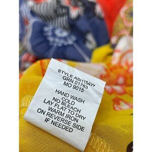 This Anthropologie Fig & Flower Women's 2X Yellow Blouse is a stylish and versatile tunic perfect for travel or casual occasions. The blouse features a flattering V-neckline and a tie closure, with a vibrant floral pattern ideal for the summer, fall, and spring seasons. Made from breathable polyester material, this easy-care blouse is machine washable and designed for a regular fit in a plus size. The boho style and bright yellow color make this blouse a standout piece in any woman's wardrobe, representing the brand Anthropologie with a touch of flower theme.