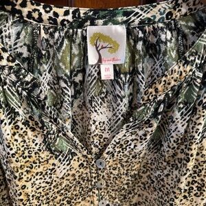 Anthropologie Fig & Flower Women's Animal Print Blouse Boho Peasant Medium