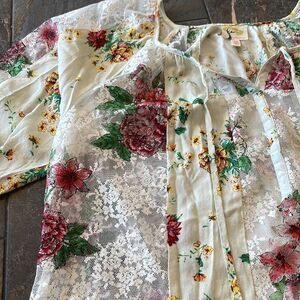 Anthropologie Fig and Flower Floral Cold Shoulder Top Size Medium