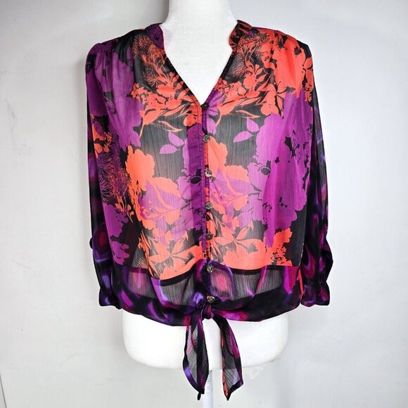 Anthropologie Fig and Flower Red Black Purple Floral Button Front Top