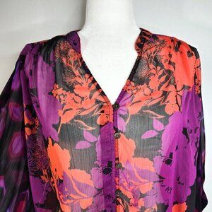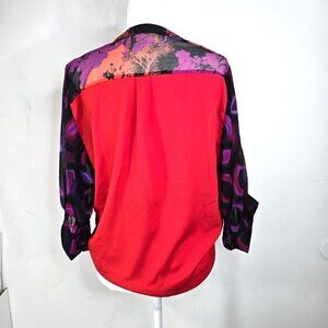 Anthropologie Fig and Flower Oversized Red Black Purple Floral Button Front Top