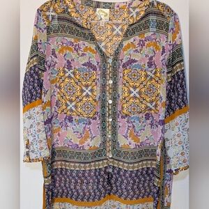 Anthropologie Fig and Flower S Boho Bohemian Hippie Sheer Tunic Top Cover Up