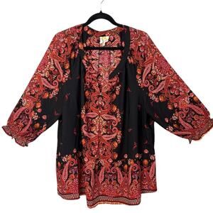 Anthropologie Fig and Flower Women's Blouse Paisley Floral Black Red 3X Fall