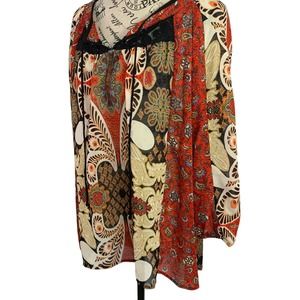 Anthropologie Fig and Flower Womens Size Large Boho Peasant Blouse Floral Sheer