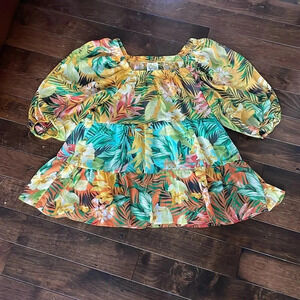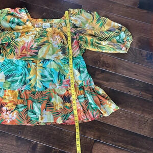 Anthropologie Fig and Flower sheer tropical print top Puff sleeves size S