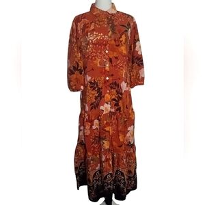 Anthropologie Figueroa & Flower Floral Tiered Midi Length Dress Size Large