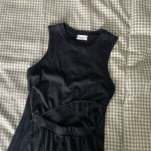 This chic black mini dress by T.La features an asymmetrical cutout design that adds a modern twist to its classic sheath silhouette. The sleeveless style and crew neck make it perfect for a cocktail night out, while the structured fabric ensures a flattering fit.