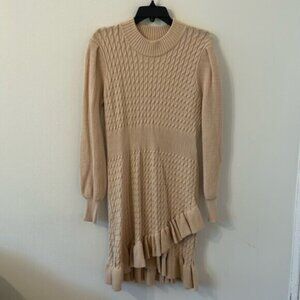 Anthropologie Flat White Long Sleeve Sweater Dress Tan Beige Size XL
