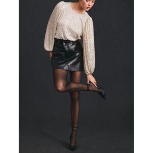 Anthropologie Flat White Sequin Long-Sleeve Top Size L Petite Keyhole Back