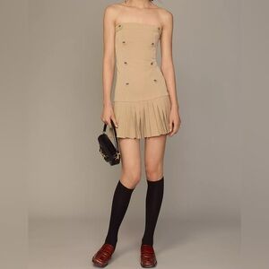 Anthropologie Flat White Strapless Pleated Mini Dress - Size M - Beige - NWT