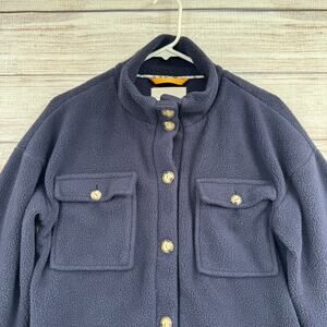Item: Anthropologie Fleece Button Up Shacket Jacket Womens XS Navy Blue 4 Pockets