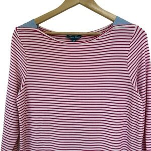 Anthropologie Fleur Bleue Pink and White Stripe Nautical Dress, Medium