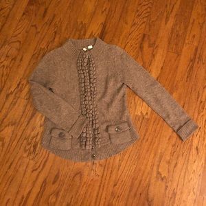 Snap closure, front pockets with button detail. 90% wool, 10% nylon. Hand wash.