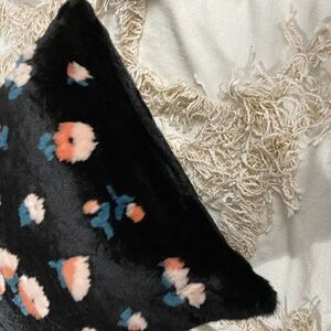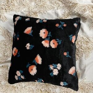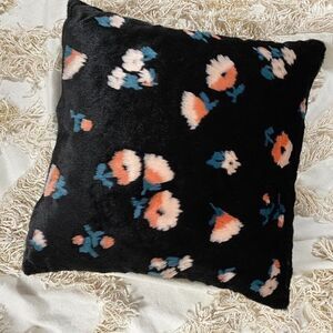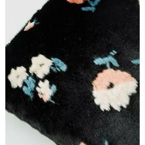 Anthropologie Flora Faux Fur Pillow Black Floral Pattern 20" x 20" NEW