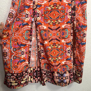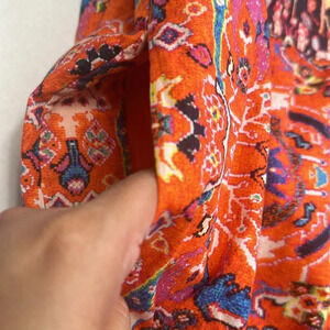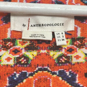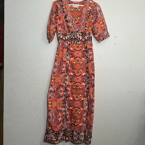 Anthropologie Floral Abstract Maxi Dress in Red Motif V Neck Boho Womens Size 2