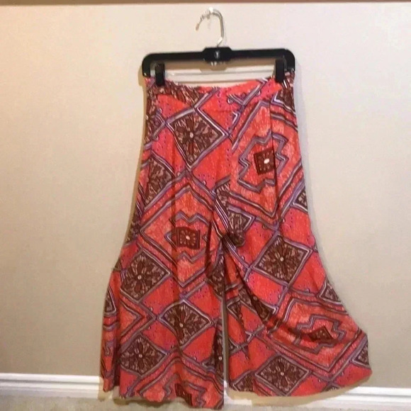 Anthropologie Floral Boho 70’s Styling Extra Wide Leg Pant Zip Front- Size 4