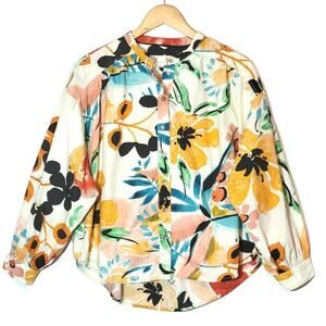 Anthropologie Floral Button Down Shirt Relaxed Fit Long Sleeve Tropical Boho S