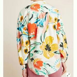 Anthropologie Button Down Shirt with a Beautiful Multicolor Floral Print.