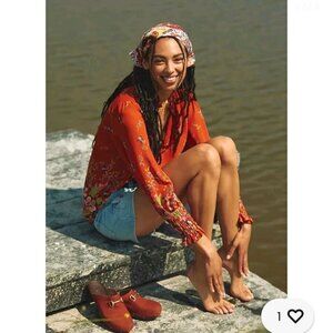 This elegant Anthropologie chiffon blouse features a ruffled neckline and metal buttons, offering a sophisticated look. Perfect for any occasion, its floral design adds a touch of femininity. Ideal for layering or wearing alone. Retail $100