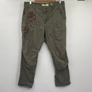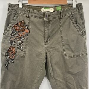Anthropologie Floral Embroidered Wanderer Utility Pants Cotton Linen Green 31