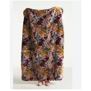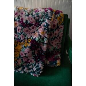 Anthropologie Floral Faux Fur Throw NEW
