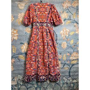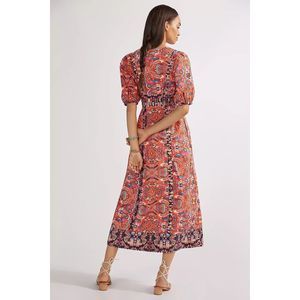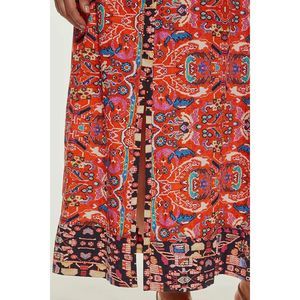 Delightfully dreamy, this sweeping, boho-inspired maxi features beaded embellishments and a medley of abstract motifs.