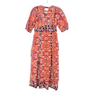 Anthropologie Floral Maxi Dress Boho Double Slit Front V Neck Multi Color