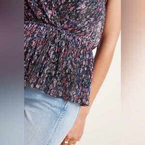 Anthropologie Floral Metallic Pleated Surplice Peplum Blouse Size Medium