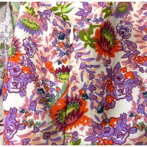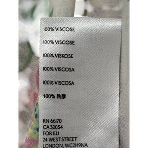 Elegant midi dress with floral pattern. Features a V-neckline and handkerchief hem. Perfect for any occasion.