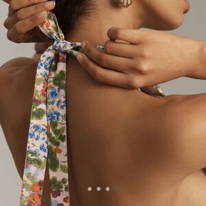 Chic mini dress with a vibrant floral pattern. Halter neckline. Perfect for summer outings.